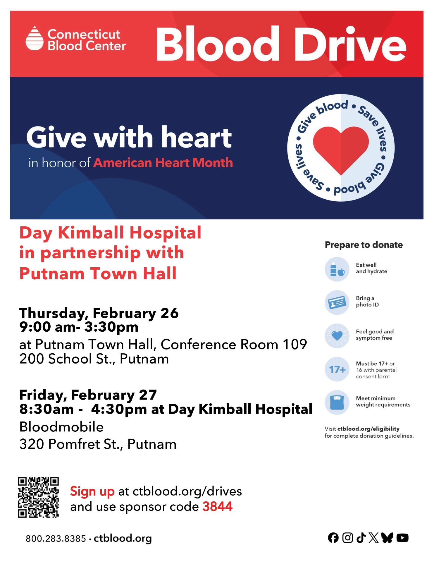Where: Day Kimball Hospital | Main Entrance A | Bloodmobile