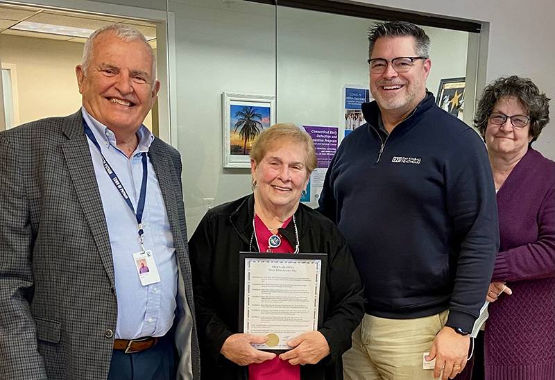 Day Kimball Healthcare (DKH) recently celebrated the 50th anniversary of Mary Ellen Snyder, RN, one of the health system’s longest-serving employees. The impressive milestone was marked on February 6, 2023, and to celebrate, Putnam Mayor Barney Seney proclaimed February 6th as “Mary Ellen Snyder Day” in the Town of Putnam, in recognition of Snyder’s longevity and dedicated service to the community of Northeast Connecticut.